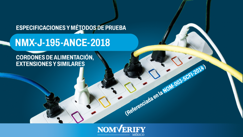 La NMX-J-195-ANCE-2018, la cual se encuentra en referencia con la NOM-003-SCFI-2014, debe ser aplicada para distribución de equipos como: cordones de alimentación que se comercializan de manera independiente, cordones de alimentación que se incorporan a un aparato, extensiones y productos que se comercializan o destinan para uso como extensiones, como lo pueden ser multicontactos, barras multicontactos y similares, todos estos aparatos se utilizan para suministrar energía eléctrica a aparatos domésticos y similares.